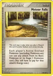 Meteor Falls (Japanese: 流星の滝 Meteor Falls) is a Stadium card. It is part of the EX Deoxys expansion.