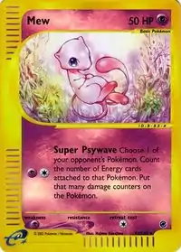 Mew (Japanese: ミュウ Mew) is a Psychic-type Basic Pokémon card. It is part of the Expedition Base Set.