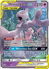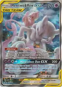 Mewtwo & Mew (Japanese: ミュウツー&ミュウGX Mewtwo & MewGX) is a Psychic-type Basic Tag Team Pokémon-GX card. It was first released as part of the Unified Minds expansion.