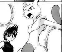 Mewtwo makes a reappearance as an ally, and is shown to be capable of communicating through telepathy. It first reappears in It Takes Patience, Knowledge and a Really Quick Beedrill, where it reveals that it had rescued the injured Lorelei after her defeat at the hands of Sird. Although Red is initially confused as to why Mewtwo had shown up, Mewtwo reveals that it wishes to fight with Red against Team Rocket. Mewtwo reveals that after leaving its master, Blaine, it gained the ability to speak through telepathy, but only to those it trusts, such as Yellow, Red, and Blaine. Red accepts Mewtwo as his ally, much to the shock of Blue and Green.