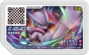 This disk has identical stats to the other Grade 5 Mewtwo disk from the same set. The only difference is its ability to Mega Evolve into Mega Mewtwo X.