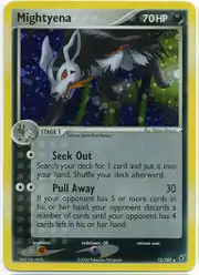 Mightyena (Japanese: グラエナ Graena) is a Darkness-type Stage 1 Pokémon card. It is part of the EX Deoxys expansion.