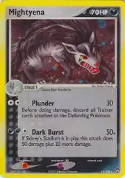 Mightyena (Japanese: グラエナ Graena) is a Darkness-type Stage 1 Pokémon card. It is part of the EX Power Keepers expansion.