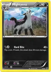 Mightyena (Japanese: グラエナ Graena) is a Darkness-type Stage 1 Pokémon card. It is part of the Kalos Starter Set.