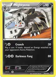 Mightyena (Japanese: グラエナ Graena) is a Darkness-type Stage 1 Pokémon card. It is part of the Phantom Forces expansion.