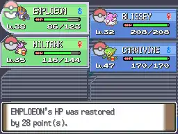 In Red Rescue Team and Blue Rescue Team and Explorers of Time and Darkness and Sky, Milk Drink is a move with 15PP that ignores accuracy and evasion checks. It heals all team members in the same room as user for ¼ of their maximum HP. In hallways, this move targets Pokémon up two tiles away (or one in one-tile darkness). This move is affected by Muzzled status condition, Taunt and Snatch.