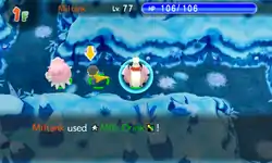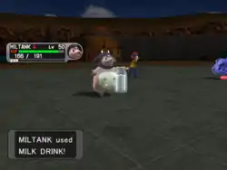 In Super Mystery Dungeon, Milk Drink restores HP of the user and teammates in the same room by 40% of their max HP.