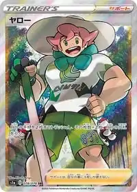 Milo was introduced as a Supporter card in the Pokémon Trading Card Game during the English Sword & Shield Series (the Japanese Sword & Shield Era). It was first released in the Japanese VMAX Rising subset and the English Rebel Clash expansion, with artwork by take. It was also released as a Full Art card and Secret card in the same Japanese and English expansions, with artwork by Hitoshi Ariga. It allows the player to discard up to two cards then draw another two for each.