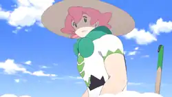 - "My hat's meant for farm work, but it comes in quite handy during weather like this. It's a lifesaver in battle!"