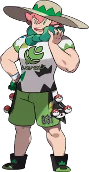 - "This Trainer was born as the son of farmers. He has honed his strength, stamina, and skill as a Pokémon Trainer from a young age by working together with his Pokémon. Because of his gentle nature, he has trouble going all out on weaker opponents, which is why his Gym is the first one for challengers to attempt during the Gym Challenge. He always wears his boots, as apparently they let him dig in his heels when he needs to."