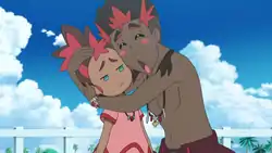 Mimo is always keen to help out around the farm and gets annoyed with Kiawe whenever he stops her from lifting heavy objects, as he is concerned about her safety. She also views Kiawe as overprotective, but she still loves him a lot. Mimo is supportive of Kiawe, as seen in The Final Four!, when she visited Manalo Stadium to cheer Kiawe during his battle against Gladion. Despite this, it seems that Mimo has a secret crush on Gladion.[1]