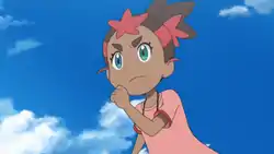 In Getting Down to The Ire!, Mimo continued to watch Kiawe's battle against Gladion, and observed as her brother lost. The Poké Problem segment revealed Mimo had begun to admire Gladion while heading home on a boat with her father.