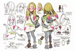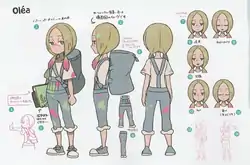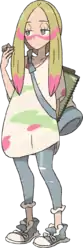 Mina is an aspiring artist who started painting at an early age. Her habit came about after her family's Snubbull accidentally destroyed a picture she made while trying to express its liking of the work, an action Mina interpreted as her art not being good enough and striving to become better. She is acquainted with Ilima, and Mallow keeps one of her paintings in the foyer of her family's restaurant.