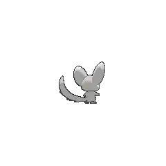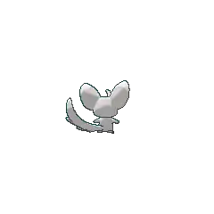 Minccino is a furry, gray chinchilla-like Pokémon with scruffs of fur on its head and neck. It has large ears on the sides of its head with red insides partly covered by tufts of fur. It has large, brown eyes and a small, dot-like nose. Its limbs are somewhat rounded and small, and its ears and tail have white tips. The tail is also long and particularly furry. This tail acts like a broom as Minccino uses it to clean its den. It also brushes another Minccino with its tail to greet it. It prefers clean habitats, and it is obsessed with cleaning dirty items. It can also use its tail to perform it and its evolved form's former signature move, Tail Slap.