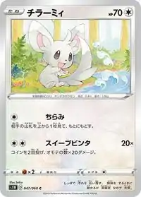 Minccino (Japanese: チラーミィ Chillarmy) is a Colorless-type Basic Pokémon card. It was first released as part of the Sword & Shield expansion.