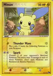 Minun (Japanese: マイナン Minun) is a Lightning-type Basic Pokémon card. It is part of POP Series 1.