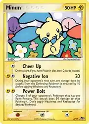 Minun (Japanese: マイナン Minun) is a Lightning-type Basic Pokémon card. It is part of the POP Series 3 expansion.