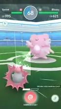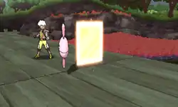 Wobbuffet's body becomes surrounded in a white, blue, or multicolored reflective aura, allowing it to reflect special attacks back at the opponent at twice the initial power. On occasion, it looks similar to a Counter attack. | ||