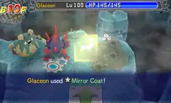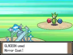 Glaceon's body becomes surrounded in a glowing reflective aura, blocking all special attacks. | ||