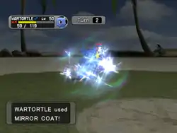 In Red Rescue Team, Blue Rescue Team, Explorers of Time, Explorers of Darkness and Explorers of Sky Mirror Coat is a non-damaging move with 15 PP. The user will give itself Counter status condition, causing adjacent special attacks be reflected back at the user. In Time and Darkness, it still uses the old classifications from before physical/special split. Being a non-damaging move, it is affected by Taunt.