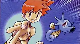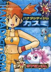 Misty (Japanese: カスミ Kasumi) is a Gym Leader of Cerulean City's Gym, known officially as the Cerulean Gym. She gives the Cascade Badge to Trainers who defeat her in battle. She specializes in Water-type Pokémon.