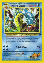 Misty's Gyarados (Japanese: カスミのギャラドス Kasumi's Gyarados) is a Water-type Stage 1 Pokémon card. It is part of the Gym Challenge expansion.