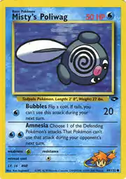 Misty's Poliwag (Japanese: カスミのニョロモ Kasumi's Nyoromo) is a Water-type Basic Pokémon card. It is part of the Gym Challenge expansion.