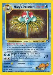 Misty's Tentacruel (Japanese: カスミのドククラゲ Kasumi's Dokukurage) is a Water-type Stage 1 Pokémon card. It was first released as part of the Gym Heroes expansion.
