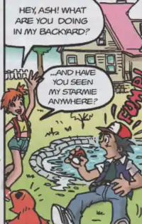 In Strip 22, Misty said that Ash should catch "nice, trainable Pokémon" like her Staryu and Horsea. She also said that Ash doesn't have any "Poké-taste" and criticized his Pikachu, then Pikachu shocked her.