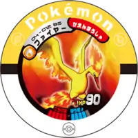 Moltres (Japanese: ファイヤー Fire) is a Pokémon Battrio puck. It is part of the Mysterious Mew expansion.