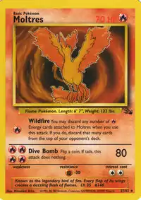 Moltres (Japanese: ファイヤー Fire) is a Fire-type Basic Pokémon card. It was first released as part of the Fossil expansion.