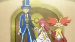 In Party Dancecapades!, Pierre hosted a party for Performers and their Pokémon which included ballroom dancing followed by a Tag Battle. He was Aria's dance partner. At the end of the party, he announced a Pokémon Showcase was slated to be held in Fleurrh City.