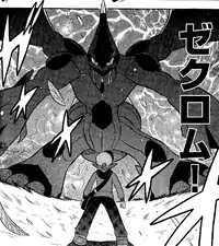 | Zekrom was sent out along with Victini and Reshiram during both battles with Cheren. Zekrom defeated his Emboar in the first one. The second one was tough as it faced off in a Triple Battle against his Emboar again along the fully evolved starters that Cheren borrowed, including Monta's Serperior. Teaming up with Victini and Reshiram, Zekrom was able to defeat the starters.