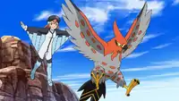 Although it put up a good fight, Hawlucha proved to be no match for Talonflame. As a result, Hawlucha was defeated, and this meant Moria and Talonflame wouldn't battle Ash's Fletchling. Bonnie came up to Moria, however, and asked if she would still battle Fletchling. This request was backed up by Ash, but Moria was hesitant, since they already made an agreement. Right at that moment, Talonflame was caught in a net by Team Rocket. Moria and the others followed Team Rocket's balloon with their wing-suits. Serena's Fennekin managed to destroy the balloon, after which the battle against Team Rocket continued on land. While Ash battled Team Rocket, Moria tried to rush to the net with her Talonflame to free it, but Ash's Fletchling already managed to do so before her. Moria then joined the fight and had her Talonflame blast Team Rocket off. After the battle, Talonflame thanked Fletchling and now accepted its request to battle, causing Moria to accept as well.