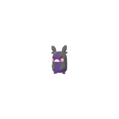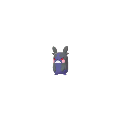 Morpeko is a short, chubby rodent Pokémon who can change forms via its Hunger Switch Ability, which alters its appearance. The features shared between the two forms are short, stubby arms and feet, a pair of pink circular cheek pouches, a very tiny nose, two almond-shaped ears with a single fur tuft under each, and a primary body color separating two areas of fur which cover the arms, ears, cheeks, and eyes, and zigzag inward towards its face, stopping at the waist line. These fur patches form pockets in which it is seen storing seeds. One the back of its body is a pattern outward from the bottom half of its fur that resembles a Pikachu tail. In its Full Belly mode, its body is a creamy yellow in color, its eyes are circular and black with large white pupils, the fur on the left side of its body is black, and on the right side, it is brown. A single bucktooth can be seen protruding from its smiling mouth. While in its Hangry Mode, Morpeko's primary body color turns purple, its eyes become downward-slanting red semi-circles, and the right-hand patch of fur turns from brown to black so that it matches the other side. Its mouth is also constantly formed into an angry snarl.