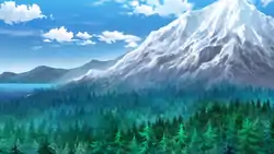 In Nosing 'Round The Mountain!, Alan asked Ash for a battle near the mountain, so that his Nosepass could evolve. In many other Pokémon the Series: Diamond and Pearl episodes, the mountain could be seen in the background scenery.