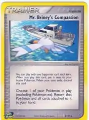 Mr. Briney's Compassion (Japanese: ハギ老人の思いやり Old Hagi's Compassion) is a Supporter card. It is part of the EX Dragon expansion.