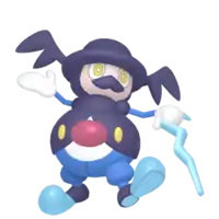 Mr. Rime is highly skilled in tap dancing and waves its ice cane while it moves gracefully. It is popular due to its amusing movements and have influenced the Mime Jr. of the Galar region to learn its dancing steps, leading them to evolve into a regional variant of Mr. Mime. It can release psychic powers through the pattern on its belly.