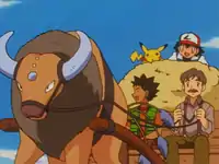| Mr. Shellby has a Tauros which pulls his wagon so he can feed his Pokémon. He first appeared giving Ash and his friends a ride to and around his ranch.
