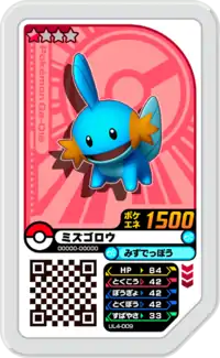 Mudkip (Japanese: ミズゴロウ Mizugorou) is a Grade 1 Pokémon Ga-Olé disk. It is part of the fourth Ultra Legend set.