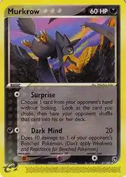 Murkrow (Japanese: ヤミカラス Yamikarasu) is a Darkness-type Basic Pokémon card. It is part of the EX Sandstorm expansion.