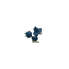 Murkrow has a fondness for anything sparkly, and it will go as far as fighting with other Pokémon, such as Meowth or Gabite, in order to gain their stashes. Whenever it is chased, it loses the attacker by leading it down dark mountain trails, and sometimes it does this to travelers as a mean spirited prank. Its thieving and nocturnal nature has led it to become representative of misfortune. It is possible to train a Murkrow to repeat words, as seen under Team Rocket's ownership. Murkrow usually live in flocks amongst forests and swamps.