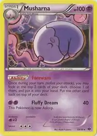 Musharna (Japanese: ムシャーナ Musharna) is a Psychic-type Stage 1 Pokémon card. It is part of the Next Destinies expansion.