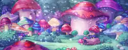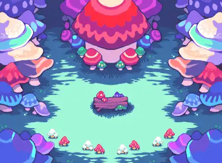 Mushroom Forest is an enclosed clearing in a dense forest. It has many large mushrooms growing in it, thus giving the area its name. One mushroom, in the back of the area, is especially large and is surrounded by smaller mushrooms. A small log rests in the middle of the clearing.