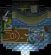 N's room resides on the fourth floor. It is decorated in a childish manner, with cloud wallpaper and floor covering as well as there being many toys strewn about the area, many of which can be interacted with. Some of them show sign of recent usage (such as the train set) and some of which denote usage by Pokémon as well as humans, such as the skating ramp which upon inspection is covered in claw marks and scratches. There is a home basketball hoop installed on the west wall, before which lies a basketball with the word "Harmonia" (N and Ghetsis's surname) inscribed on it.