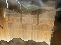 The Castle was also seen in a flashback in Secrets From Out of the Fog!, where a ceremony involving N and led by Ghetsis and the other Seven Sages was taking place, when suddenly Reshiram appeared, setting the castle ablaze with its Fire attacks, preventing the ceremony from being completed, much to Ghetsis's anger.