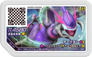 Naganadel (Japanese: アーゴヨン Agoyon) is a Grade 5 Pokémon Ga-Olé disk. It is part of the fifth Grand Rush set.