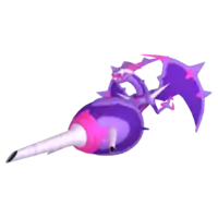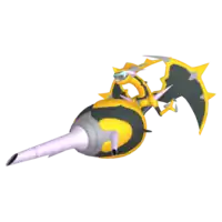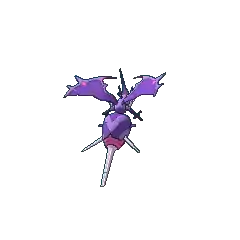 The lower half of Naganadel's body houses its brain. It resembles a swollen wasp's abdomen and is filled with poisonous liquid. It is covered in stripes of light and dark purple and has three hollow stingers at the tip. The stingers are gray and have a fuchsia marking around them. The largest stinger is in the center; the other two are considerably smaller and sit on either side. These stingers are connected to its brain, so it will react violently if they are touched. Its main stinger can eject a luminescent, adhesive poison over a distance greater than six miles.[1] In the anime, Naganadel is shown to be able to communicate with humans through telepathy and show them visions of the past.