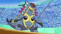 | Nando used Armaldo in League Unleashed! against Ash's Staraptor and Ash's Quilava. It managed to defeat Ash's weakened Staraptor and put up a good fight against his Quilava before they were both knocked out.