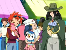 He appeared again in A Secret Sphere of Influence!, where he was falsely arrested after being accused of the theft of the Adamant Orb from the Eterna Historical Museum. He revealed to Ash and his friends that he had won both his first Ribbon in a Contest as well as the Forest Badge from Gardenia. Under questioning from Officer Jenny, he insisted that he was innocent of the theft. Once Team Rocket was identified as the true culprits and the Orb was recovered, he was released. After being exonerated of the crime, he explained the mythology behind the Adamant Orb to Ash and his friends, citing the Original Story from the Sinnoh myths.